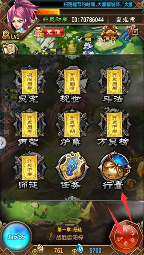 道具领取后,点击屏幕右下角“菜单”,选择“行囊”,切换至“丹药”分类页。