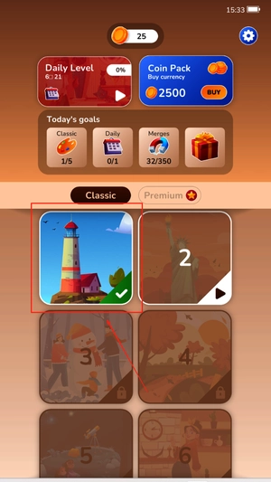 进入游戏后,你可以挑选不同主题的拼图项目,每个主题下都设有多个关卡供你选择,选定想挑战的关卡后,就能进入对应的地图界面。