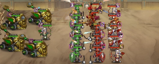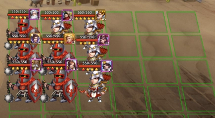 这个阵型的实用性很广泛,不管是攻城战,还是单挑战斗、竞技场战斗都能派上用场,它能让你在一定程度上战胜那些战力比你强的常规阵容对手。