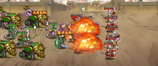 攻城战斗时,常规阵型配置通常是五个前排,有时甚至可以安排六个前排;后排的输出单位,若有战车便可优先选用,要是没有战车的话,就挑选射程相对较远的弓兵或弩兵。需要注意的是,输出单位不要离前排太近,这样能避免被敌方技能影响到。
