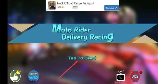 在游戏的启动界面,点击“Tap To Start”按钮后,即可进入游戏开启外卖配送的流程。