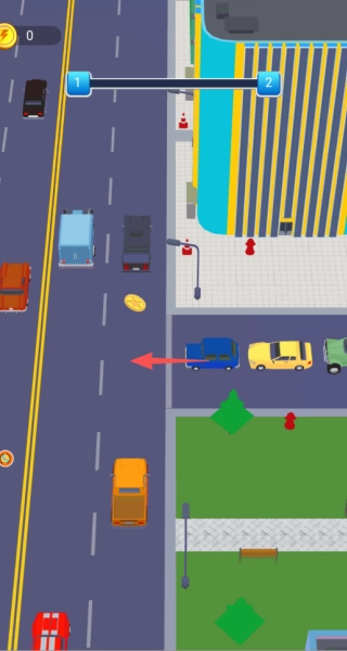 1、直观的点击交互设计,使玩家只需通过简单触控,就能精准引导每辆车安全且高效地融入复杂车流。