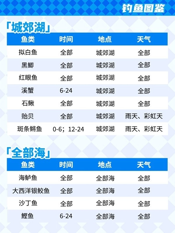 3、若想钓到某些特殊种类的鱼,需在特定的天气和位置才行。