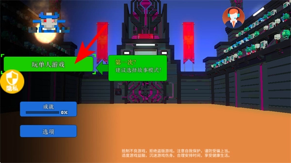 进入游戏的启动界面后,点击那个被红色箭头指向的“玩单人游戏”按钮,就能进入游戏的单人模式,这可是开启游戏冒险之旅的关键一步操作。