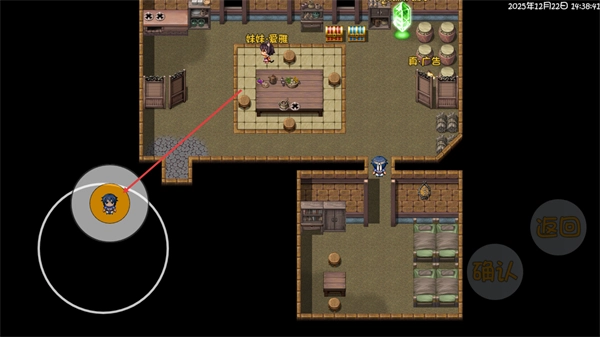 在客栈场景中,通过操控左侧的移动按钮来控制角色移动,你可以在场景的不同区域进行探索和互动操作。