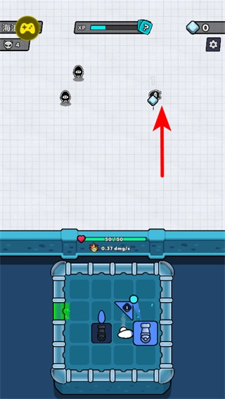 战斗时留意红色箭头所指的钻石等掉落资源,之后收集这些资源能解锁更多道具,帮助增强阵容实力来达成关卡目标。