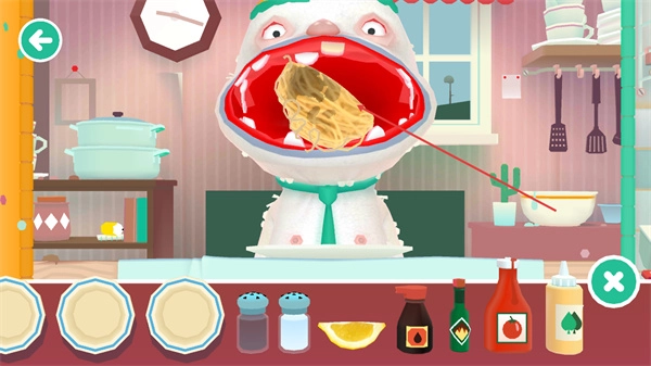 将制作好的面条喂给当前角色,还能搭配底部的调料来调味,以此完成该角色的用餐环节。