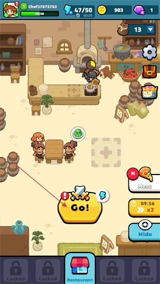 在餐厅界面点击Go按钮,就能进入对应的战斗关卡,开启塔防挑战的进程。
