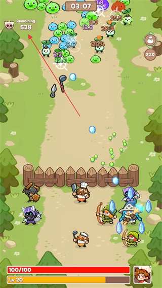 进入战斗场景后,操控已部署的角色攻击怪物,留意左上角显示的剩余怪物数量,以此推进当前关卡的进度。