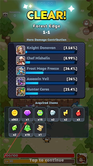 完成关卡通关后,点击界面上的继续按钮,就能领取上述各类奖励食材,随后返回游戏餐厅界面开展经营。