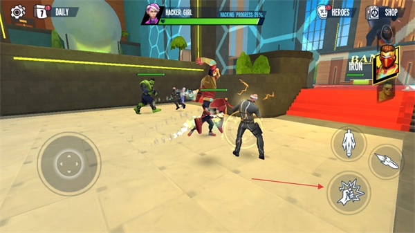战斗时可切换不同定位的英雄组合,比如选近战高坦度的绿巨人搭配辅助型角色,借助技能间的互补效果来分摊承受的伤害,同时提升整体的输出效率。