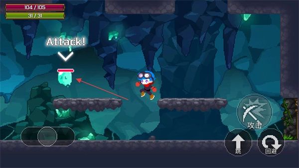 跳到平台上,对准绿色目标,点击攻击键发起进攻,推动关卡进度。