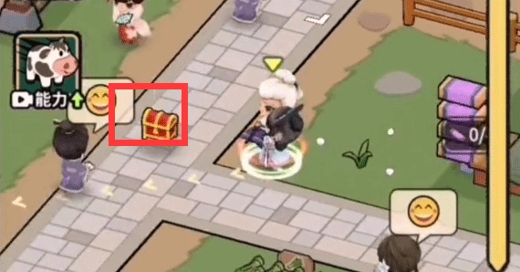 2、这个时候我们先别急着把老奶奶直接送到指定地点,应该先去找游戏宝箱并把它打开。