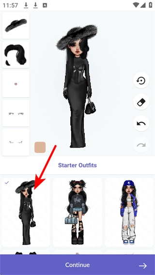 点击Starter Outfits区域下的套装选项,就能快速切换对应的穿搭造型,从而完成基础装扮的选择。