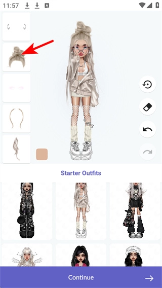 你可以点击左侧栏的发型选项,通过切换不同的发型样式来搭配当前造型,完成个性装扮后就能继续推进流程了。