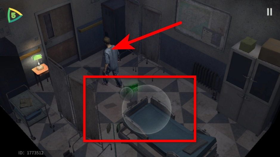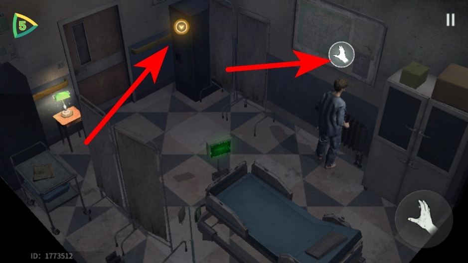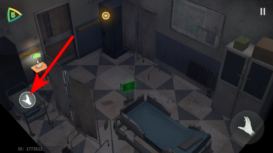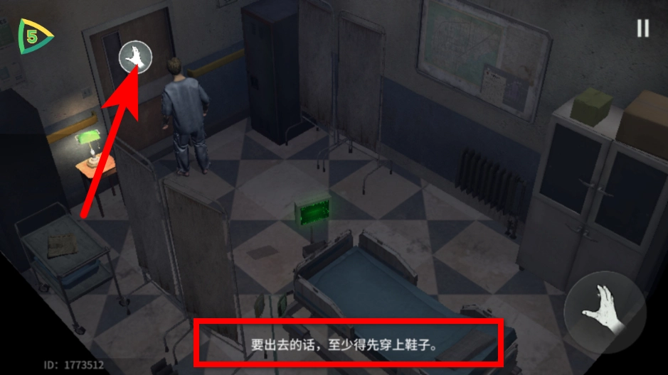 在病房场景中,点击右侧的互动键,即可触发该区域内的提示信息。