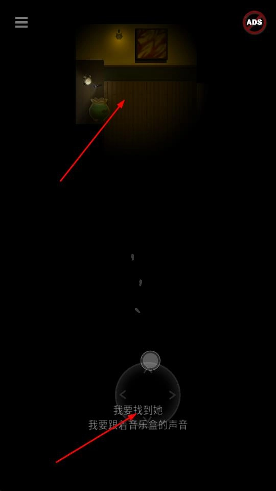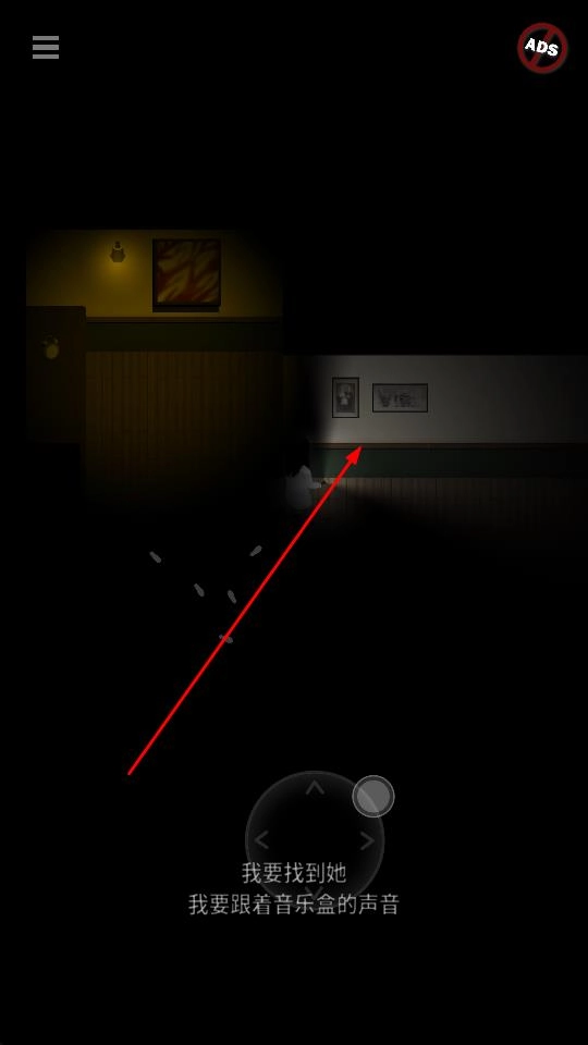 你可以通过底部的虚拟摇杆来控制角色移动,在昏暗的场景里跟着音乐盒的声音去探索。界面上方的小地图区域会展示环境里的细节,像花瓶、挂着画的房间这些,得一步步解锁场景才能推进游戏流程。