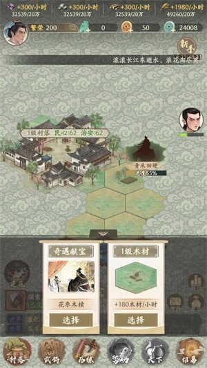行至途中常会触发随机奇遇——或是偶遇隐士赠予兵书,或是卷入商队劫案,选择不同路径将导向截然不同的资源回报与剧情分支。