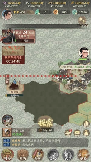 进入主城后,轻点“探索”按钮即可派遣斥候踏足未知疆域,地图边缘的雾气将随行动逐步消散。