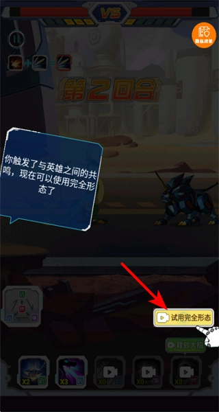 当英雄共鸣被触发后,点击“试用完全形态”的选项,就能让英雄完成变身;变身后的英雄,其战斗力会得到显著增强,从而帮助玩家更迅速地战胜敌人。