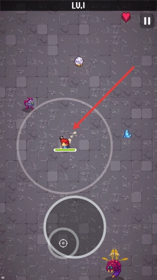 在关卡中,你可以通过虚拟摇杆操控角色移动,当角色靠近怪物时会自动发起攻击。过程中要注意关注角色的血量状态,灵活躲避敌人的攻击,同时收集场景中的道具,逐步推进LV.1的进度,完成对怪物的挑战。