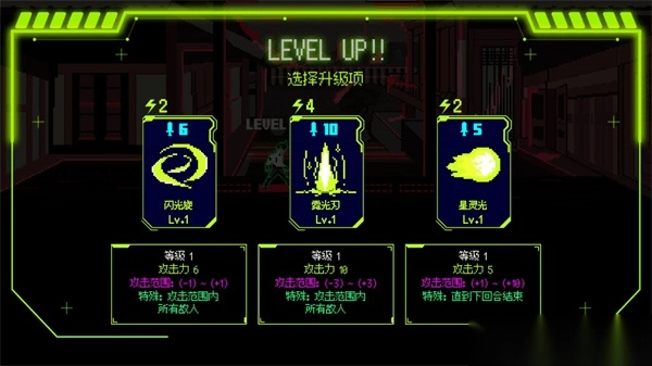 3. 每当清理完一波敌人,就会随机出现三个增益效果供选择其一,偶尔还会刷新商店,方便购买道具。