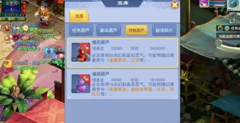 副本探索:参与车迟国、乌鸡国等副本,消耗精力封印获取副本葫芦,葫芦可出售换取精力或直接开启获得经验、储备金及随机物品。