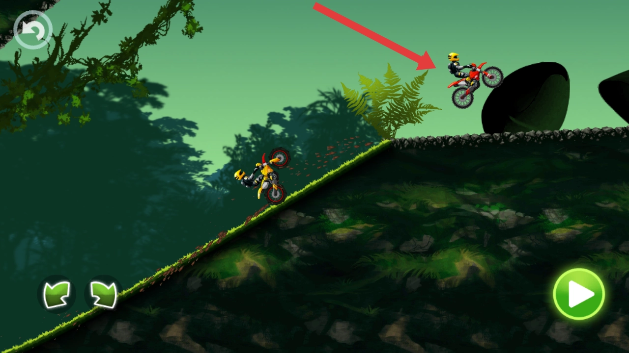 点击右下角那个绿色的播放按钮,就能让摩托车提速,不过得随时用左边的按键来保持摩托的平衡。
