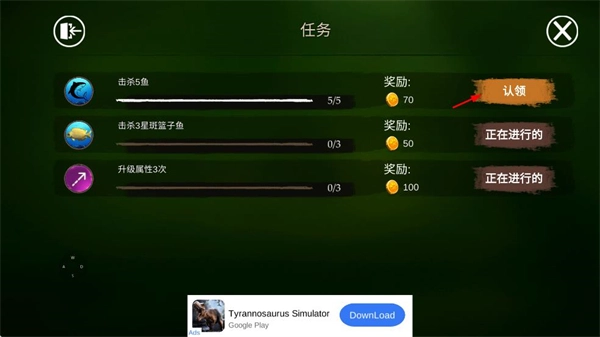 在任务界面领取已完成任务的奖励,积攒资源以用于角色属性提升和后续的游戏进展。