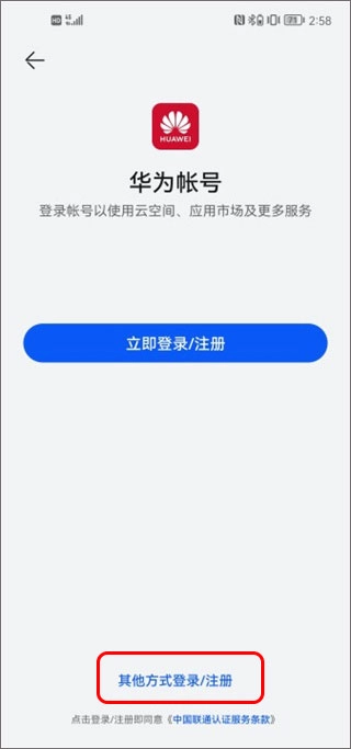 2、点击页面中的"登录华为账号"按钮
