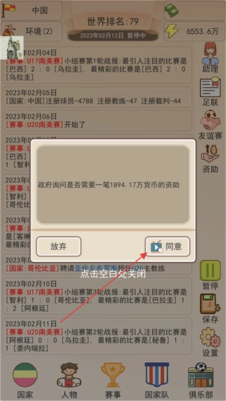 当收到政府资助相关询问时,点击同意按钮,即可获得资金支持,从而助力足协的发展。