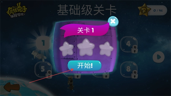 打开游戏后点击“开始”按钮进入关卡选择界面,新手玩家仅能从基础级关卡开启游戏体验。