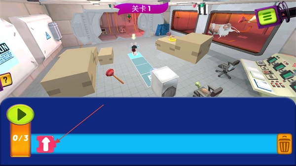 点击那个绿色的播放按钮,就能操控戴着脑电波帽子的兔子,让它按照拼图的方向移动。
