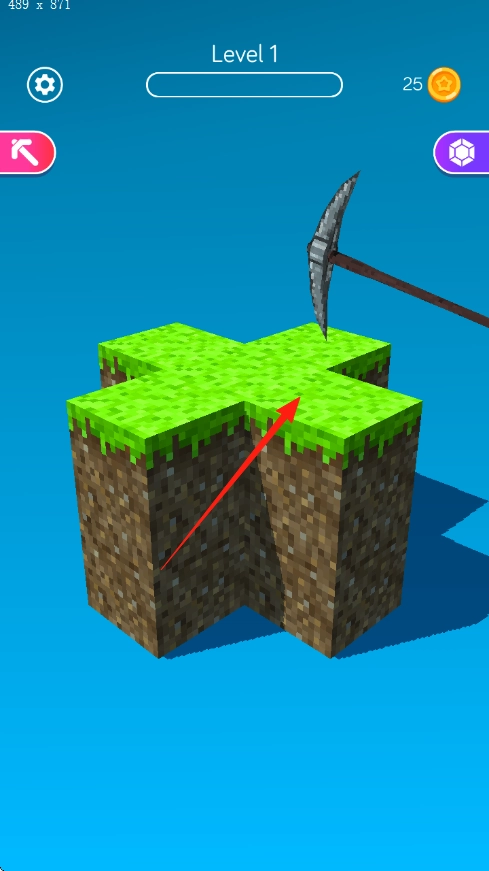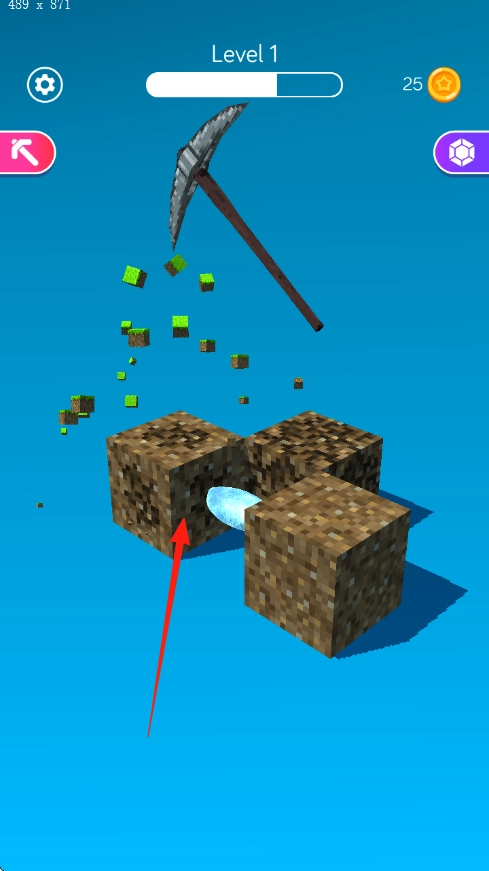 矿石挖掘在Level1进行,使用铁镐操作,点击绿色草地方块即可启动挖掘流程,随后逐层破除土壤。