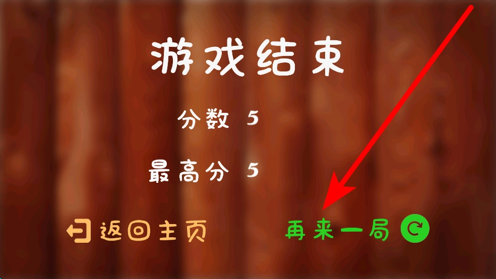 游戏结束后会呈现最终得分和历史最高分,要是还想继续挑战就能点击“再来一局”,要是打算退出则可以选择返回主页,这样能让玩家依据自身需求来挑选接下来的操作。