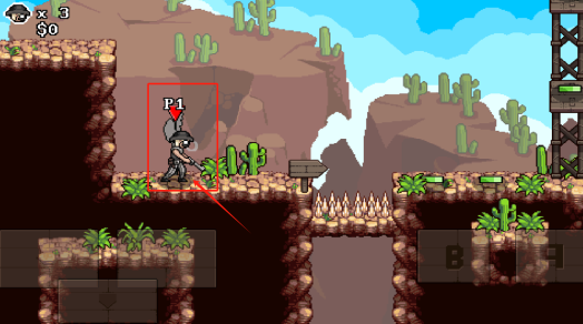 3、P1负责操控角色进行移动与射击,界面会显示3条生命值以及0金钱,B键或许对应特殊技能。