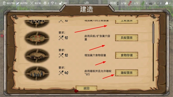 从最初搭建的基础巢穴开始,一步步健全各项功能区域,以满足蚁群生存、繁衍和训练的需求,与此同时还要兼顾巢穴的防御工作,为后续的发展打下坚实基础,从而支撑蚂蚁士兵的培育以及资源的储备。