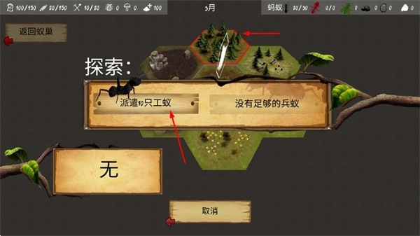 工蚁被派遣去探索新区域,以此拓展蚂蚁的领地,同时它们还要持续收集资源、管理殖民地、建造各类建筑并探索地图。