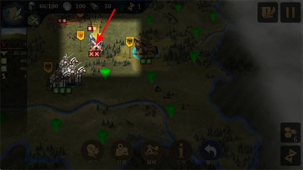 向敌方据点发动进攻,锁定带有红色叉号标识的敌方据点,调度军队展开攻势,歼灭敌方力量,攻克战略要地,拓展己方控制范围。