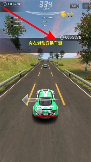 在赛车行驶时,根据提示向左或向右滑动,切换车道,避开障碍或更顺畅地前进。