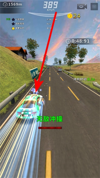 当行驶过程中触发无敌冲撞效果时,你可以利用这个效果,更顺畅地在道路上疾驰,从而突破关卡。