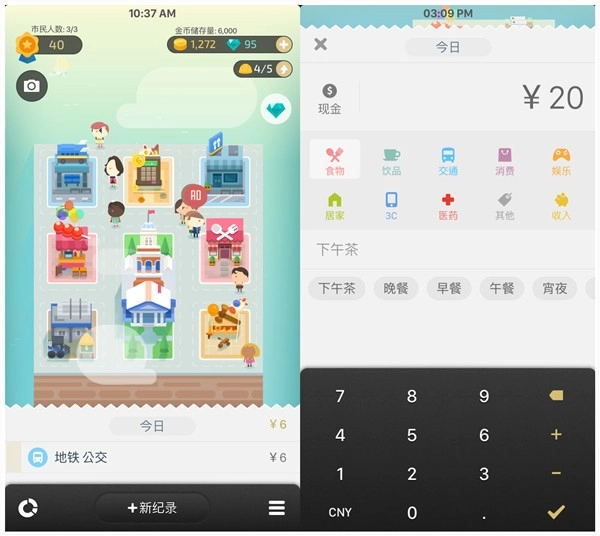 2、把记账和游戏融合起来,让用户更乐意主动记录,见证城市的发展。