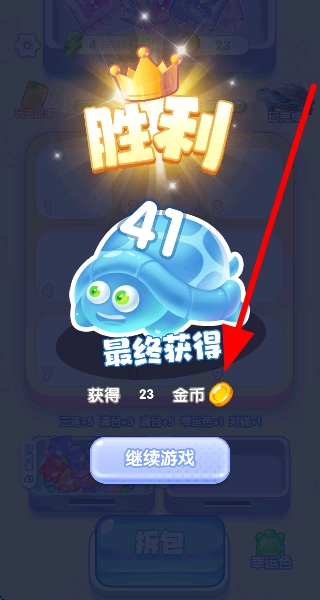 成功消除所有包裹并完成当前关卡后,屏幕会呈现胜利画面,同时玩家将获得金币等奖励;之后点击“继续游戏”按钮,即可挑战下一个全新关卡。