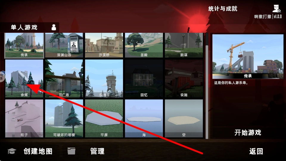 首先进入游戏,在单人游戏界面,你可以挑选传承、奈辉等不同的关卡地图,然后创建并开启游戏。