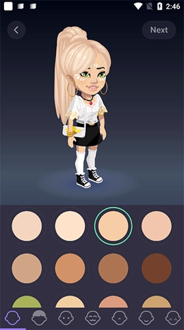 3、在这里玩家能够自由搭配角色的服装,还可以对角色的肤色、头发、瞳孔、眉毛、鼻子、唇形等进行相应的调整。
