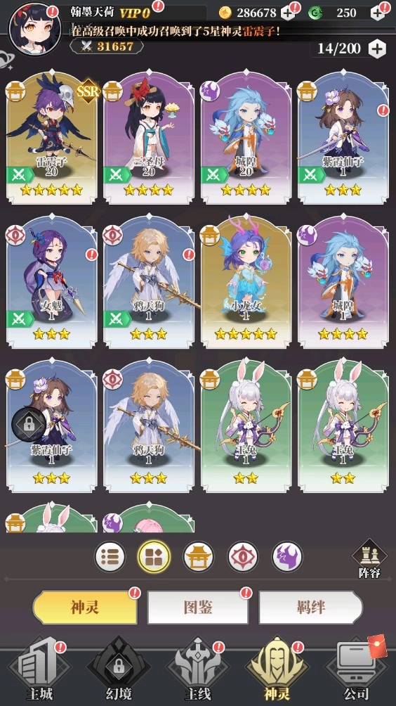 6、返回主界面后,可在主城的神灵召唤处召唤更多角色。