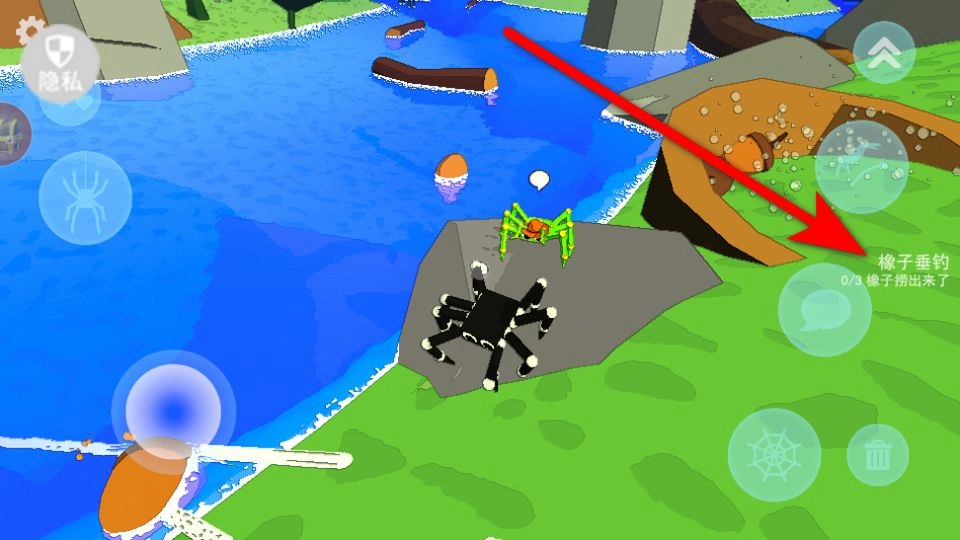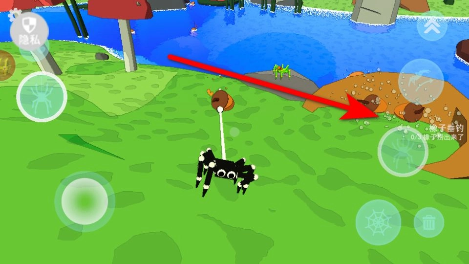成功钓到橡子后,操控蜘蛛带着橡子在草地上移动,前往任务提交点,直到达到任务要求的数量。