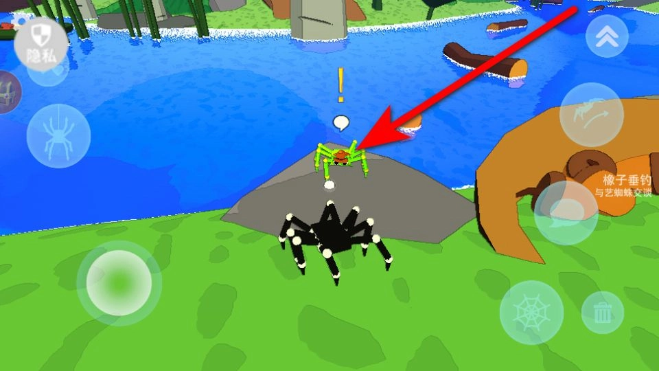 水边那只绿色的蜘蛛,点击聊天图标就能和它对话,说不定能从交谈中了解到这片区域的相关信息。