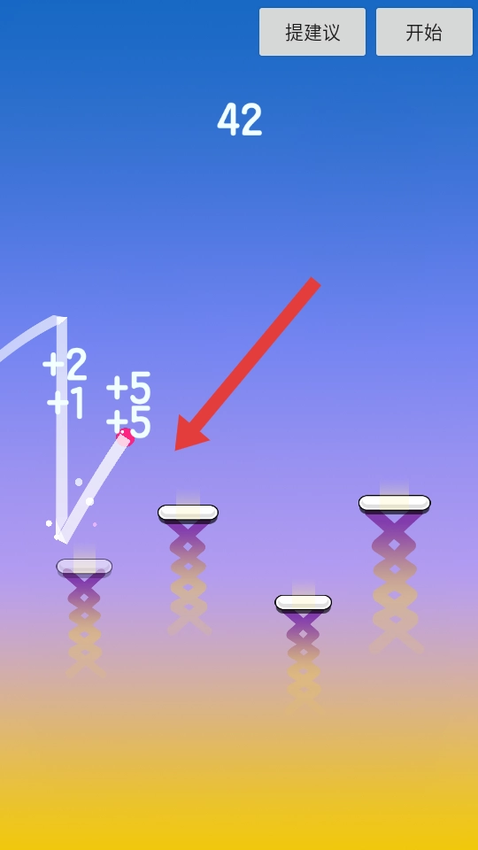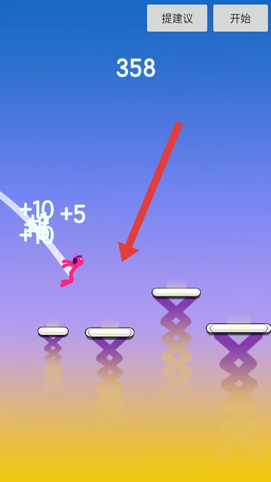 在弹跳的过程里,要留意屏幕上显示的分数加成标识,尽量让每一次弹跳都能触碰到这些可以增加分数的元素,这样就能快速累积分数了。