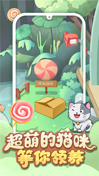 2、在这里一只超级萌的小猫咪等你来领取,你需要为猫咪安排干活、打工等任务,来提高和猫咪亲密度。